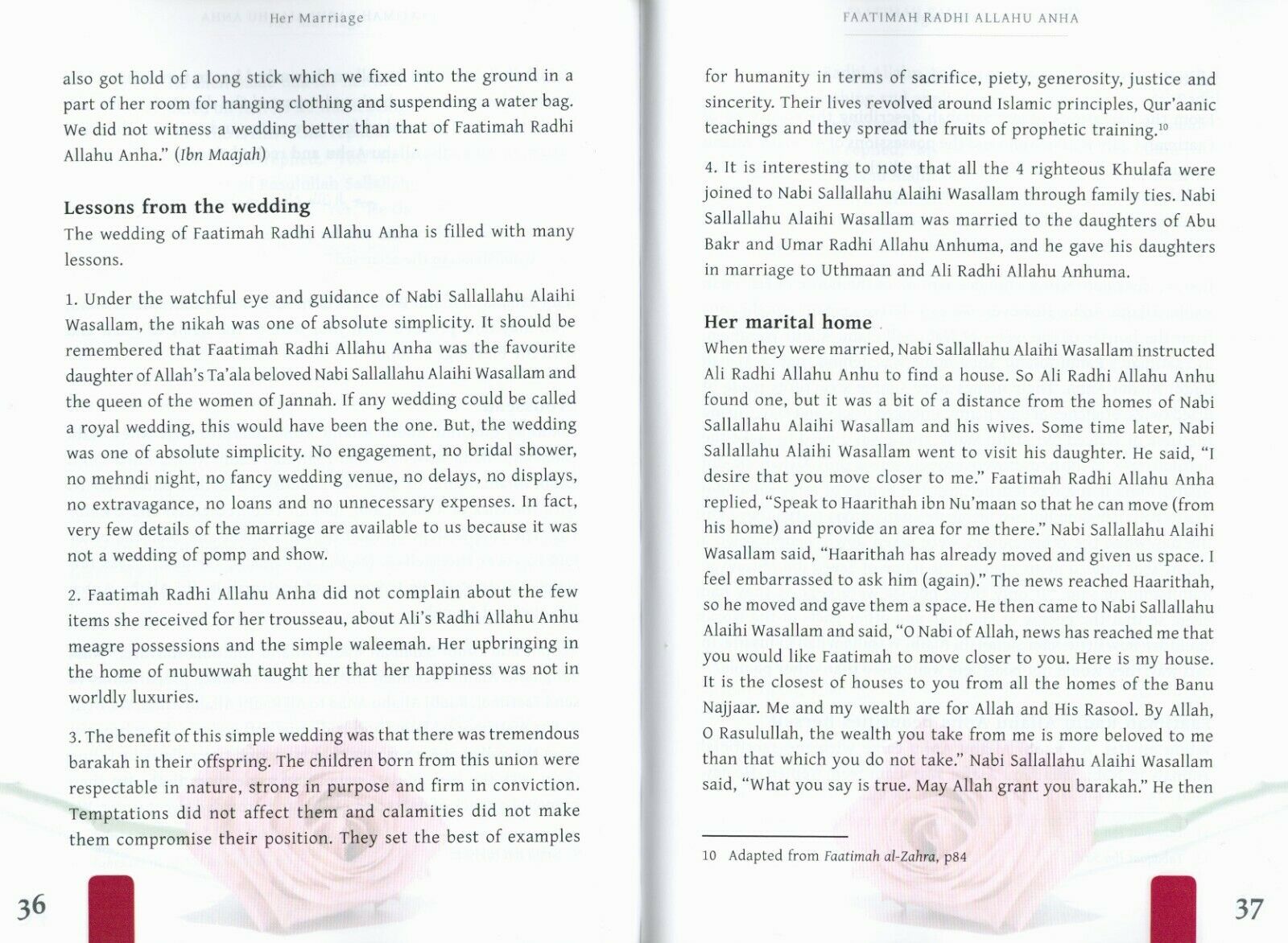 In this book, the reader is taken through the journey of life of this extraordinary woman. Stories of her sublime virtues, exceptional upbringing, prophetic nurturing and inspirational family values have been narrated. the lessons that can be drawn from her inspiring life have been highlighted so that woman today can strive to follow in her footsteps.